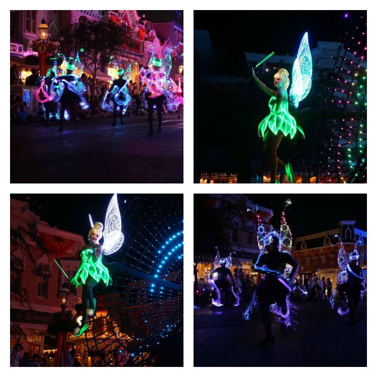 - The Tinker Bell float is 40 feet long. It has 44 universes of controls and, more than 850,000 points of light (including video screens).