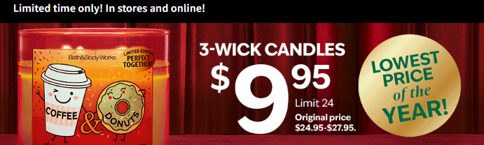 Bath and Body Works 3-Wick Candles $9.99 TODAY ONLY