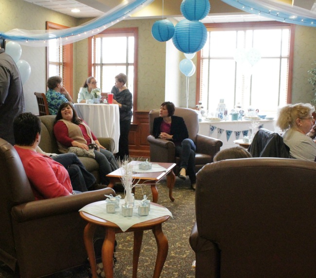 My older sister-in-law has been in the catering business for twenty years, however, this weekend her mom and little sister took over with our shower and created such a beautiful atmosphere for our guests! The only request I had for the shower was to have it at a local facility’s commons room, because it was a more coffee house feel, and I didn’t want to be at a banquet facility. We really wanted an intimate setting where we could celebrate with our closest family friends!