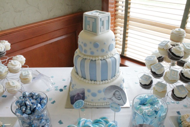 The cake had beautiful fondant icing, with matching cupcakes that had the letter “J” for Jackson in fondant as well.