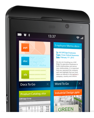 With support for the latest versions of Microsoft® Office®, synchronization with the most popular cloud providers and technology which maintains 100% of the original document formatting when making edits on the go, BlackBerry® 10 has you covered when it comes to mobile productivity.