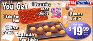 Right now you can score a BOGO deal for the “As Seen On TV Bake Pops!” Pop’em, Dip’em, Decorate & Devour. These are Buy 1, Get 1 FREE – only $19.99 + S&H