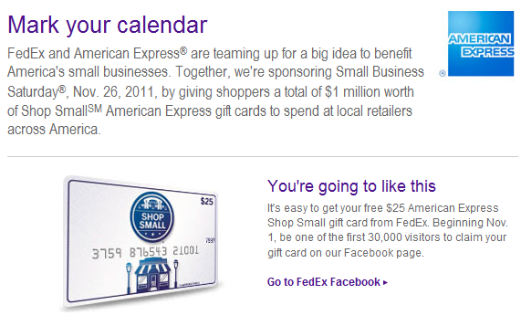 FREE $25 American Express Gift Cards from Fed Ex! 11/26!!