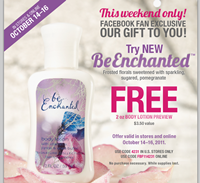 Bath & Body Works Coupons for FREE 2oz. Enchanted Lotion 10/16