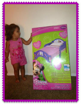As you can imagine we were more than thrilled to have the opportunity to check out the new Delta Children Minnie Mouse Toddler Bed. Our tiny tot is a huge fan of all things Mickey and Minnie. Her second Birthday was quickly approaching so we figured it would be the perfect time to do the crib to big girl bed transition.