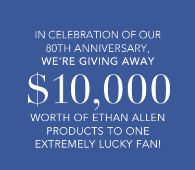 Enter for a chance to win $10,000 in the Ethan Allen Anniversary Sweepstakes! (Ends 2/28) Make sure to enter the HGTV Dream Home Sweepstakes while you’re at it!