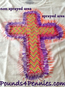 I used duct tape (the duct tape is zig zagged) to create a cross that had a negative area then colored around the duct tape. I just used squiggles. I sprayed the alcohol around the duct tape and let it dry. Then I removed the duct tape. I was surprised it bled under the duct tape, but it came out really cool.