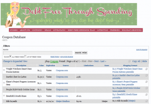 I’m afraid I never did a tutorital on how to use our coupon database, so I’m going to do that tonight! You might be wondering “What is a Coupon Database?” A coupon database is something I purchased for you guys, so that you could search for ANY product and see if a coupon is available. For example, each week before I go to the store, I search the database for the products I’m going to buy to see if there are any coupons for those products. I saved $10 in pet products the other week, just by searching the database before I went to the store! The link for our database is: http://www.debtfreespending.com/coupon-database/ (There is a picture below!)