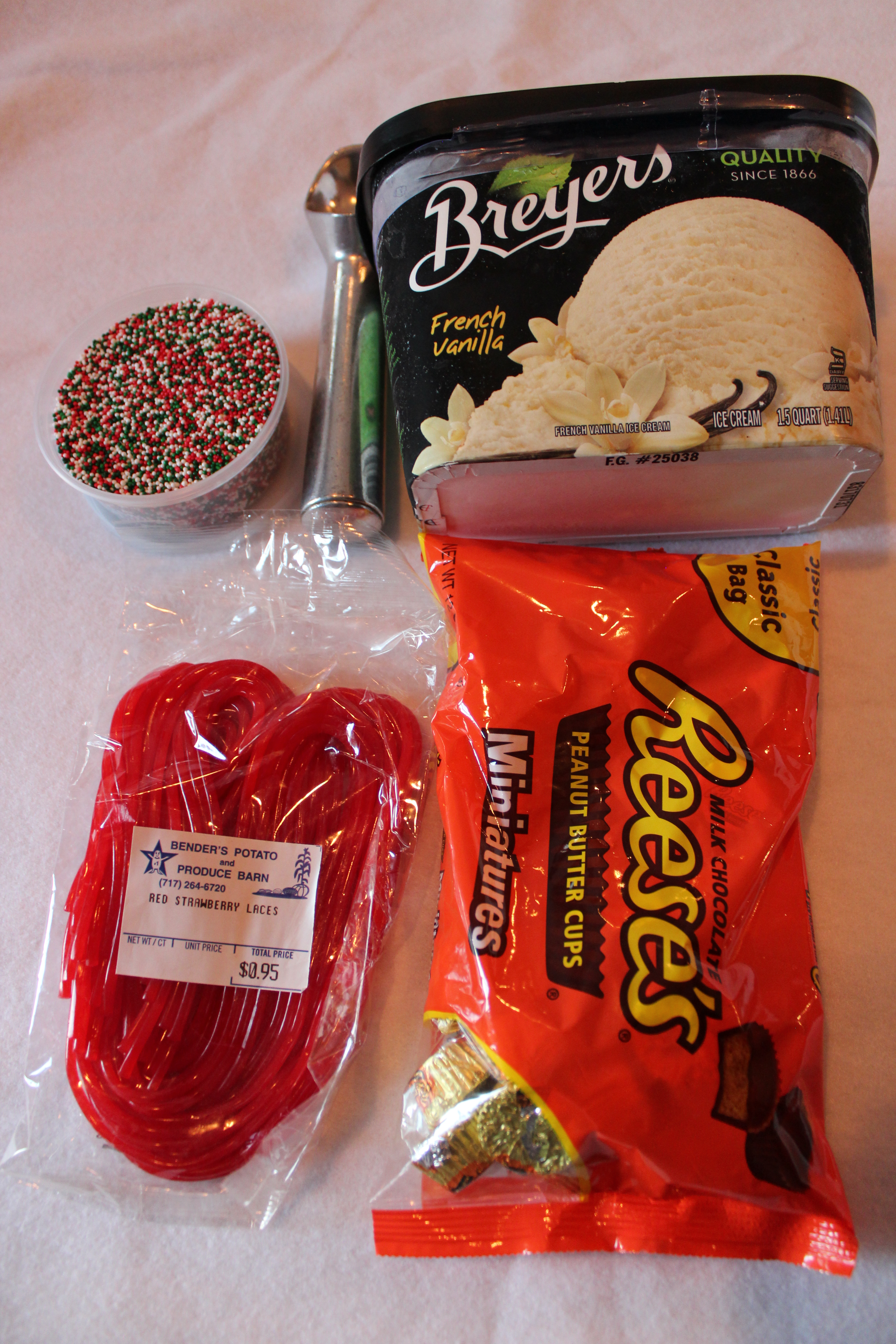 I was SO EXCITED about making one of the neatest “food crafts” I saw on Pinterest the other day! I’ve seen several pins of these adorable ice cream Christmas ornaments! So, I couldn’t wait to try and make them myself! First, you will need the following ingredients: