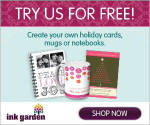 Choose from 10 Holiday Cards, 1 Notebook, 1 Ceramic Mug, 100 Business or Personal Cards, 1 Mousepad, 1 Placemat, 1 Notepad, 10 Invitations or Announcements and 12 Folded Notecards for free. Customize the color, text and design with photos, clipart, logos and more. Ink Garden is giving you $13 credit to try any of their favorite completely customizable products at no charge. User pays only shipping and handling. START THINKING CHRISTMAS GIFTS!!!