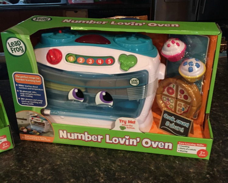 I am lovin’ LeapFrog’s Number Lovin’ Oven! This toy is too cute. It comes with pull apart bread, pizza, two cupcakes, and an egg with a skillet. It also has little plates and a tray that goes in the oven. It is a perfect recipe for number learning fun!