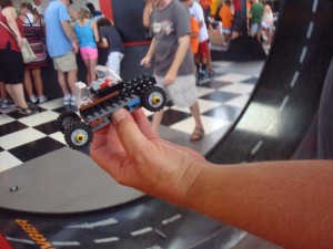 The engineering aspects of math and science are both incorporated into Lego building, which make it more than a fun activity! As you can see below, my son and hubby both had tons of fun in the Build and Test Lab! This is where you receive four wheels to build your own Lego vehicle, which you can then test and race. Their vehicle came in first three times! There were also areas of testing where you could build a model, and then set it to vibrate to see if it would collapse, which also tests your engineering skills!