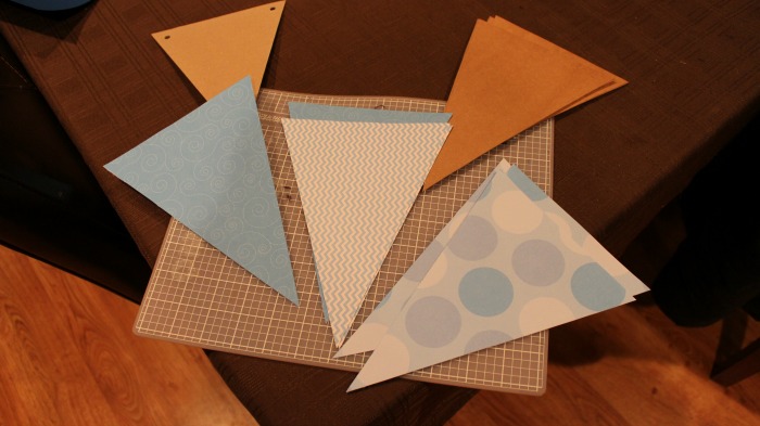 2. Then I took the chipboard template and traced 2 triangles onto the back of each of the design sheets, so I had enough pennants to spell “JACKSON.”