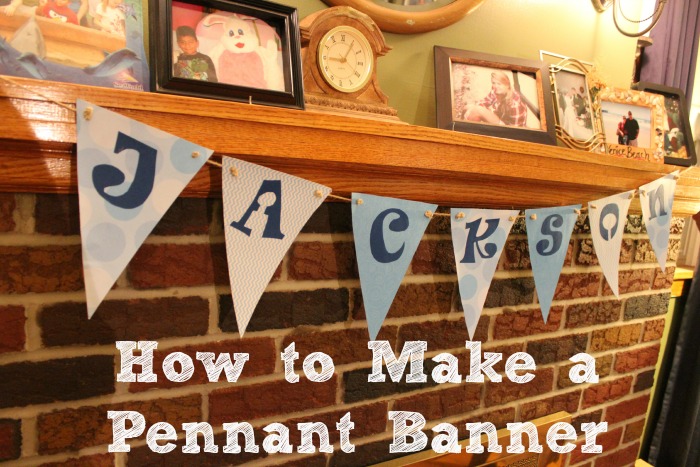 I am so excited to show you this paper pennant banner I made for my son’s shower (Yes, I know, I shouldn’t be helping to decorate, but these were just too cute!). The best part is that these are really inexpensive to make! I was able to snag all my supplies from Hobby Lobby and used two 40% off coupons! Check out our How-To Video below too!