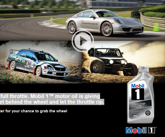Here’s your chance to drive full throttle. Mobil 1™ motor oil is giving three winners a chance to get behind the wheel and let the throttle rip