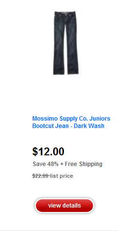 Mossimo Junior Boot Cut Jeans for $12 SHIPPED!!! March 1, 2012 by Steph Leave a Comment Today Target.com has Mossimo Juniors Boot Cut Jeans for $12 SHIPPED!