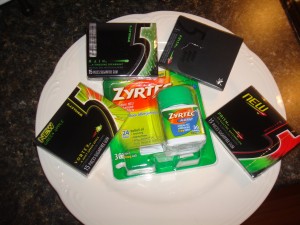 I’m SOOO excited!!! The Magic Coupon Machine at CVS printed out a $10 off Zyrtec Coupon for me this week! I paired this with a $4 off Zyrtec coupon, making my total $5.99! I had a $1 CVS ECB, which made my final price $4.99! The Coupon Machine gave me a BOGO Gum for my card and my mom’s, and these were 2/$2! BUT!!!!! The BOGO coupon took the original price off making it $0.83 for all the gum! I paid for this out of the change in my wallet! Woot woot!!!!