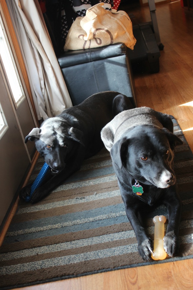 No, I know what you’re thinking, and our dogs are healthy! Instead of “Hog Heaven,” our dogs are in “Dog Heaven” with this Nylabone gift pack they received! We have three fur babies: Macey & Miley (mother and daughter black lab mixes) and Jasper (instead of an oops baby, we had an oops dog! LOL). We wanted him, but he’s definitely the bratty baby!