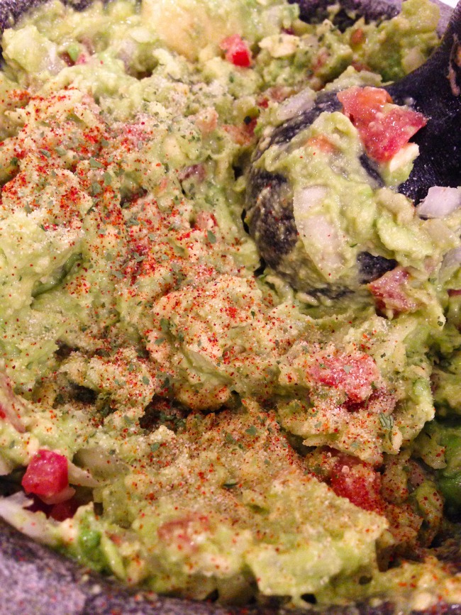 - Using a fork, spoon or pestle and mortar begin to chop up and/or grind the avocados, distributing ingredients evenly. Continue until your guacamole has reached the consistency you desire. Some like it chunky and others like it very smooth and creamy. Play with it and see what you like best!