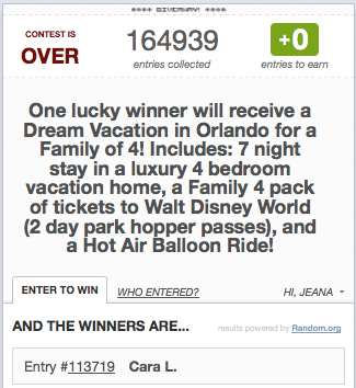 And the winner is…………………Cara L.!!!! Thank you SO MUCH for everyone that participated in this giveaway!!! REMEMBER, we have a KINDLE FIRE GIVEAWAY going on right now!!! Our Dell Laptop Giveaway is HERE too!!! Our Loaded Coupon Binder Giveaway is HERE as well!!