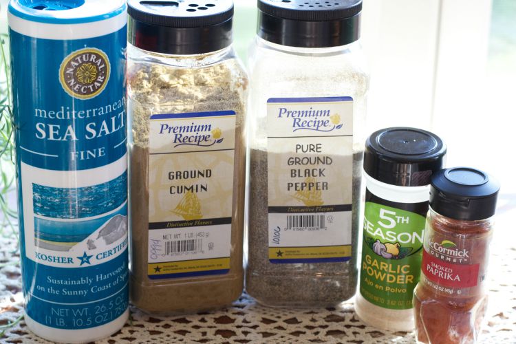 The spices I used for the dry rub: paprika, cumin, chili powder, oregano, chipotle chili powder, salt, pepper and garlic powder.