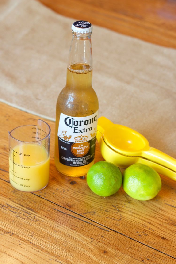 - Pour in beer, orange juice, and lime juice.