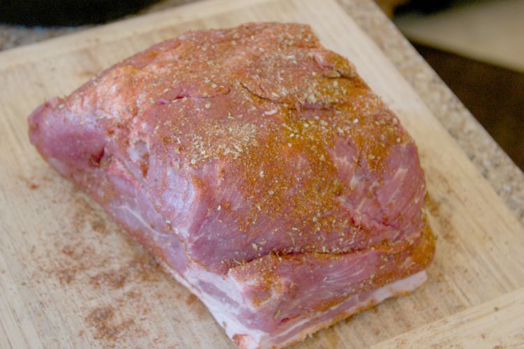 The first step in creating the perfect pulled pork is seasoning the roast.