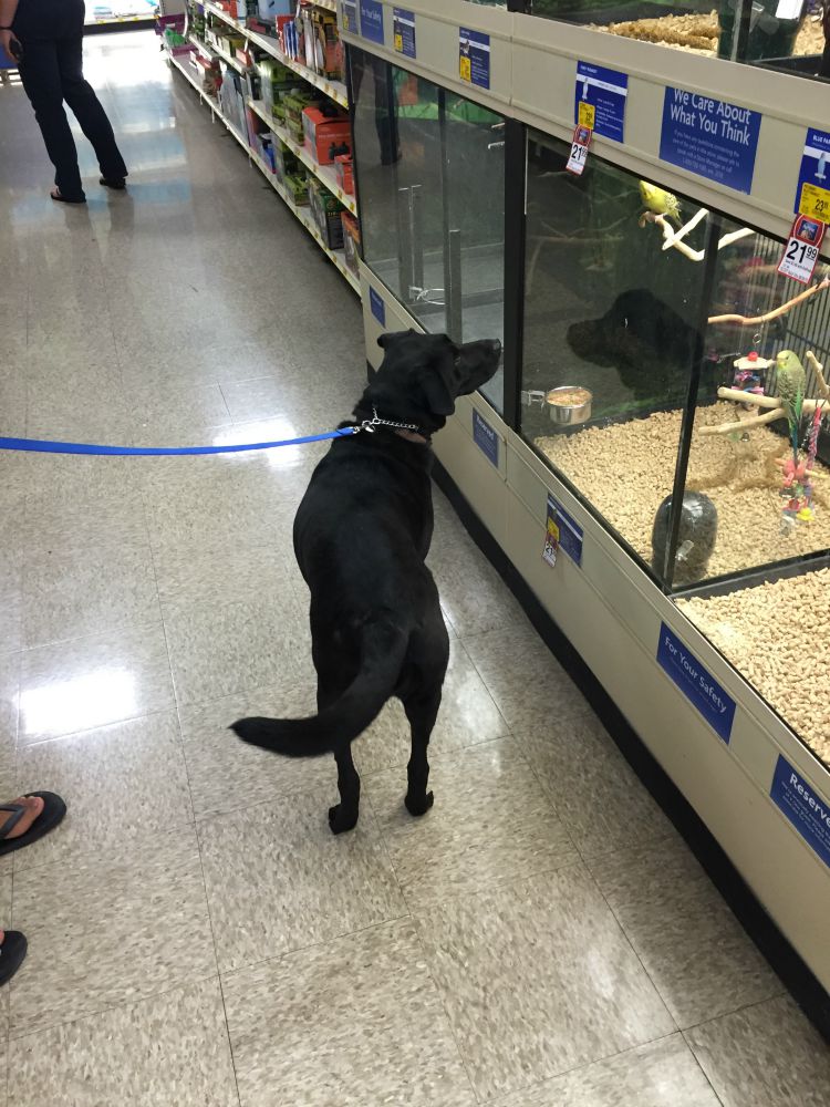 According to experts at Purina Pro Plan, around age seven, the glucose metabolism in a dog’s brain begins to change, which can affect memory, learning, awareness or decision making. Purina Pro Plan discovered a way to promote alertness and mental sharpness in dogs 7+ through nutrition and has introduced BRIGHT MIND Adult 7+ formulas. I definitely wanted to give this product a try and so we switched her for a thirty-day trial, and I will be posting my findings next week, so be sure to check back and learn more about Purina ProPlan Bright Minds. Of course this trip wasn’t all business! We had to let her watch the birds, which is her favorite thing to do at PetSmart!