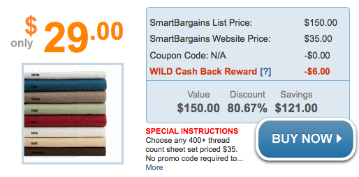 Today you can score 400+ Thread Count Sheets for $29 from Smart Bargains via ShopAtHome.com’s Wild Daily Deal!