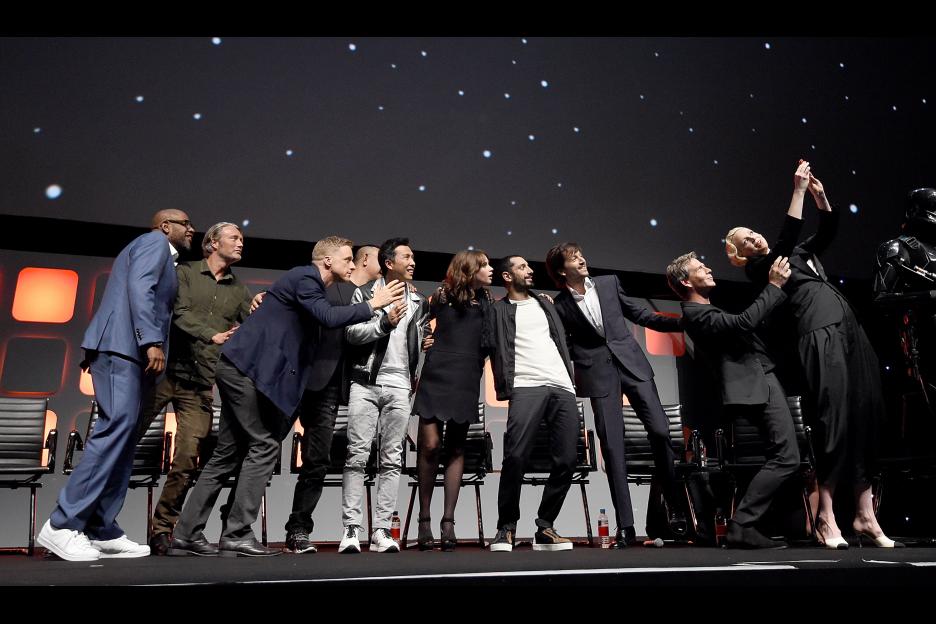 - Stars Felicity Jones, Diego Luna, Ben Mendelsohn, Donnie Yen, Mads Mikkelsen, Alan Tudyk, Riz Ahmed, with Jiang Wen and Forest Whitaker