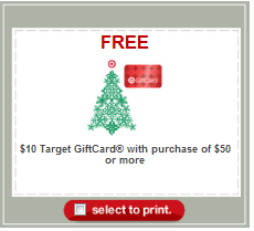 Today you can score this SWEET (AND RARE) Coupon for $10 wys $50 at Target!!! GO HERE to get your printable coupon to use in the store!!! Scroll to the VERY bottom of the page, and click on “Coupons” under WAYS TO SAVE.