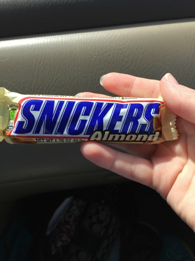 By the time we got to the car, I already had the SNICKERS® Almond bar out of the bag and started unwrapping it for hubby!