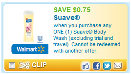I can’t believe this $.75/1 Suave Body Wash (excludes trial size) Printable Coupon is still availabe! If you haven’t printed it yet, you will want to get it before it’s gone! These are on price cut at Target for only $1.59 until 6/9, so we can get a breat buy on them!