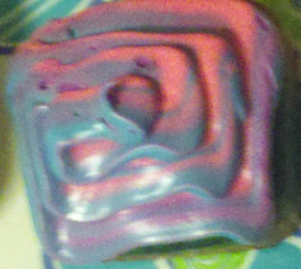 - Take a knife, fork, or toothpick and swirl the colors around, but be sure not to over mix or you’ll end up with a dull colored mess!