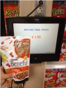 Have you seen these small bags of Purina Beneful? If your Walmart carries these small bags of dog food, you can make a little money on them!